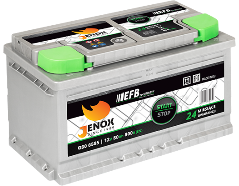 JENOX EFB to akumulator stworzony z myślą o nowoczesnych pojazdach klasy średniej i wyższej, wyposażonych w system START-STOP. Seria ta dedykowany jest do samochodów z częstymi rozruchami oraz dużą liczbą odbiorników prądu. JENOX EFB charakteryzuje się bardzo dobrą zdolnością przyjmowania ładunku w ciągu całego okresu eksploatacji oraz dużą trwałość w pracy cyklicznej w porównaniu do konwencjonalnych akumulatorów.