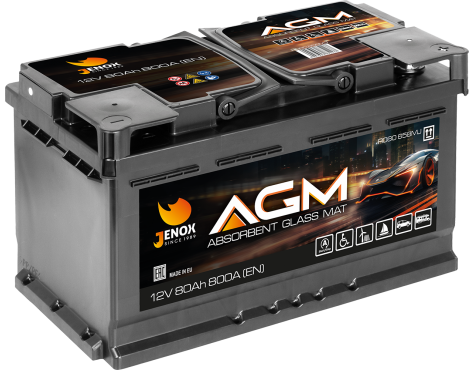 JENOX AGM (Absorbent Glass Matt) to akumulator najnowszej generacji, dedykowane do samochodów z systemami Start-Stop, w tym systemem z rekuperacją energii hamowania. Konstrukcja JENOX AGM charakteryzuje się wzmocnioną obudową, która dodatkowo wyposażona została w korki VRLA (Valve Regulated Lead-Acid), zapobiegające utracie wody z elektrolitu.